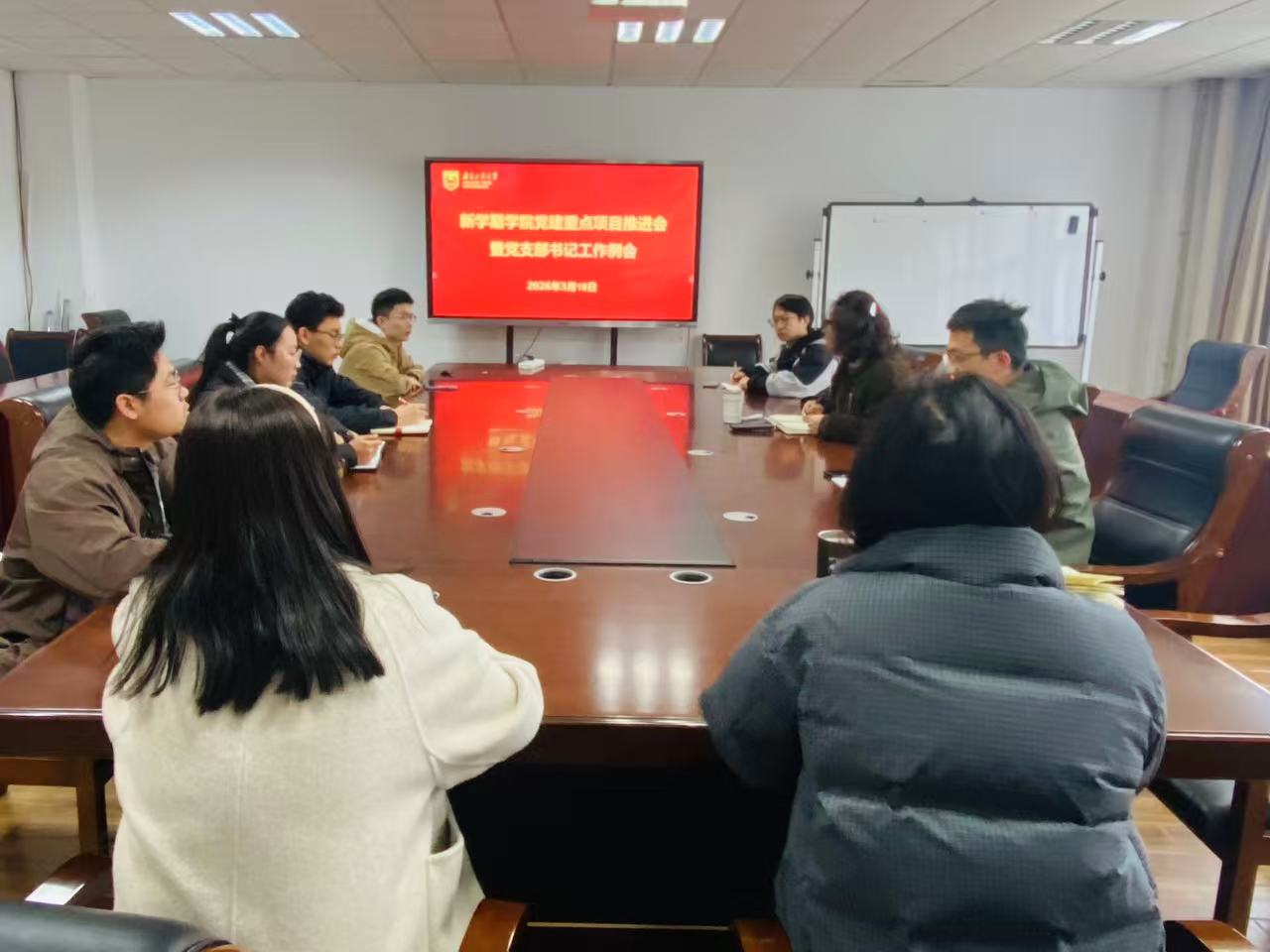 3月18日下午,能源学院党委在320会议室召开“新学期党建重点项目推进会暨党支部书记工作例会。学院党委书记丁贤主持会议,各党支部书记及副书记参加会议。